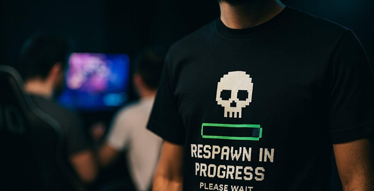 Dieses „Respawn in Progress“-T-Shirt bringt das Gaming-Gefühl direkt auf dein Outfit. Mit Lade-Animation und Skull-Icon ist es ein klarer Blickfang für Zocker und Streamer.